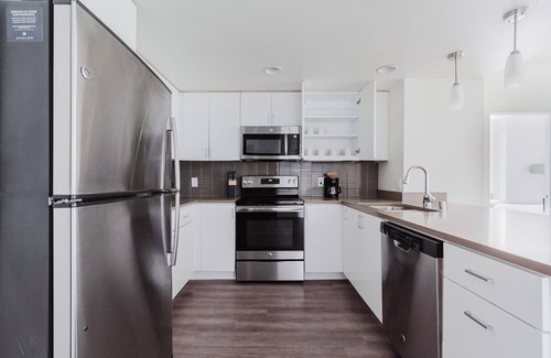 As with any Blueground apartment, you’ll find a thoughtfully designed space complete with beautiful furniture and a fully equipped kitchen in this two bedroom property. And, thanks to our superior quality mattresses, luxury linens, and towels, you can relax knowing you’ll always feel comfortably at home. When you’re ready for some fun, you can take in the Mountain View vibes or bring the entertainment to you with the premium wireless speaker or smart TV. This apartment also offers in-apartment laundry.