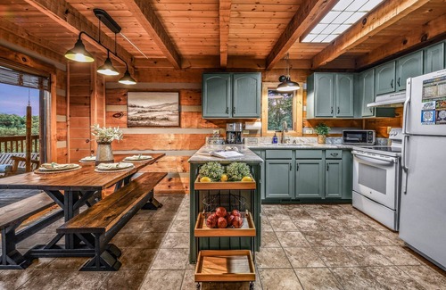 You will find a fully equipped kitchen that offers everything you need to cook a delicious meal and enjoy it at the picnic-style table that can accommodate up to 10 people. You can make yourself a cup of coffee using the dual Keurig/12-cup coffee maker. We provide a small variety of start-up k-cups. This cabin is fully stocked, including a crockpot with a timer, air fryer, toaster, blender, baking and serving dishes, tea kettle, plastic dishes/cups for small children, and grilling tools/tray. Cleaning up is a breeze after any meal using the dishwasher. We provide dishcloths, towels, dish soap, 1 roll of paper towels, 2-3 trash bags, and starter dishwasher pods.