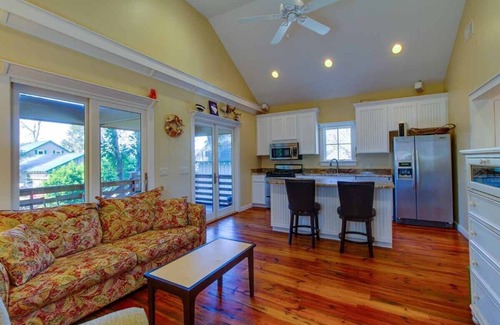 This delightful cottage sits near Old Town Bluffton. It's the perfect location to discover and explore a real Lowcountry living. Just a few blocks down Alljoy Rd. to Old Town. Birding and other wildlife abounds. Limited access for boating and kayaking on May River from deep water dock. Old Town boasts galleries, shops and restaurants, & Thursday Farmers Market (voted best in the state!). Also a few blocks to the Bluffton Oyster Company, the best fresh seafood you can buy!