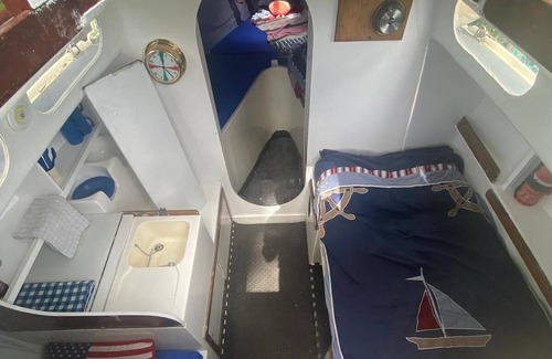 The kitchen has a kettle, toaster and a small dining area. There are 2 bedrooms in this boat which contains a double bed (once the dining table is lowered). There is one bathroom, which has a toilet and sink.