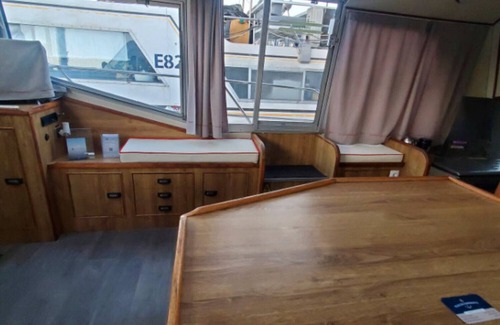 Step outside to relax on the terrace while taking in the waterway views. A coffee machine is available for your morning routine, and the boat offers a comfortable dining area alongside the kitchenette with flat-screen television.