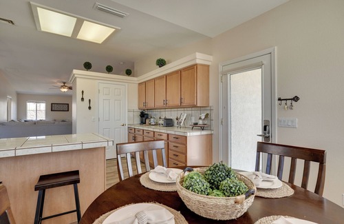 The Whipple Mountain Wilderness acts as a beautiful backdrop to this Lake Havasu City vacation rental. With its stucco style and clay roof tiles, this 3-bedroom, 2-bathroom home proves it’s Arizona locality. Guests of all stripes can easily access the home without the use of stairs, making it an ideal space to host a family reunion. Within 2 short miles, make par at Lake Havasu Golf Club, shape sand at London Bridge Beach, or see the sights at the historic London Bridge.
