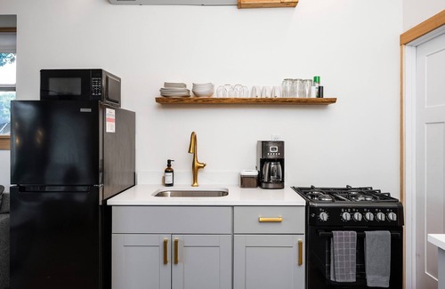 Escape to this rustic and updated lakefront resort on all-sports Arbutus Lake, just 20 minutes from downtown Traverse City! This unit has two separate bedrooms with a lofted bunk bed that requires a climb up a ladder to access. Come ready to unplug as this unit has spotty wi-fi at best. This pet friendly space is perfect for families and groups. Be prepared for action-this unit is at the waterfront right in the heart of the resort. This is not the space for folks seeking quiet and privacy. You will have access to sandy beachfront, docks, rental boats (inquire about availability) and lake views with interiors designed for modern comfort.