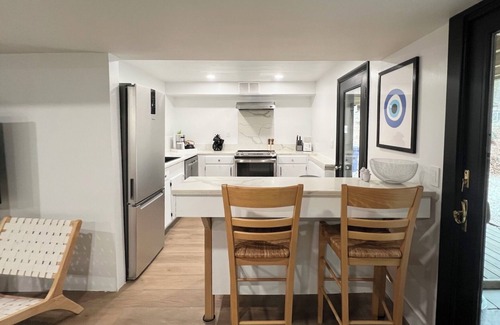 Newly renovated 2 bed/1 bath fully equipped with everything you could possibly need and more! Fully stocked with kitchen appliances, spices, tea, coffee makers, bath towels, sheets, blankets, games, etc.. :) The space is cozy yet spacious with all the amenities to dine in, relax, walk to activities and enjoy!