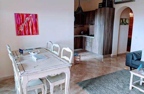 "Apartment24" is a beautiful decorated boutique apartment located in Porto Pozzo, close to the world famous Costa Smeralda on the Italian island of Sardina. The apartment is equipped with modern appliances such as a premium fully fitted kitchen for 6 people, 2 fully equipped bathrooms with hand mounted Sardinia tiles and walk in showers, a comfy living room with with a dining corner for 6 people and a large terrace. Also a large private garden belongs uniquely to the guest of Apartment24.