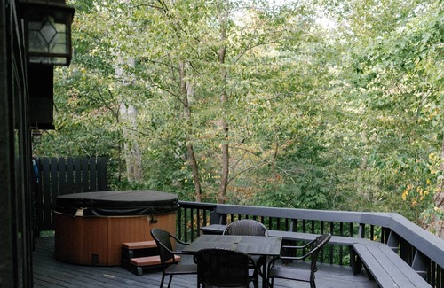 Bowie Cabin sits on an outcropping of blackhand sandstone overlooking the east gorge. The hot tub on the open deck is the perfect place for stargazing. This cabin features a King Bed and a corner Garden Tub in the main bedroom.