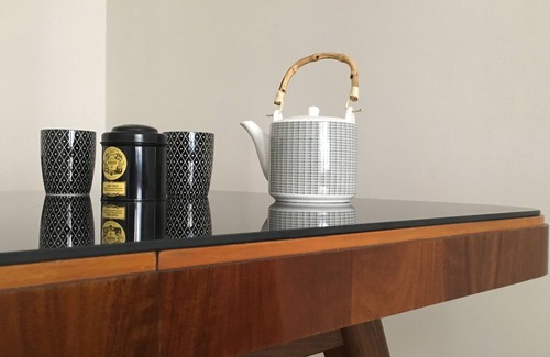 Also there for your free use: several kinds of tea, instant coffee, coffee machine refill capsules, sugar, creamer, salt&pepper, cotton and paper towels.