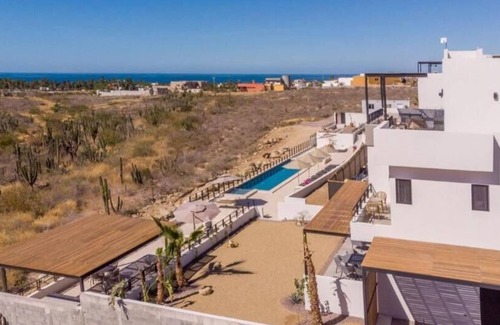 Take a refreshing dip in the infinity pool or unwind in the inviting hot tub, surrounded by the natural beauty of Todos Santos. Relax on the spacious sun deck, an ideal spot to soak up the warmth of Baja California Sur; Entertain guests or enjoy quiet evenings under the palapa, featuring a fully-equipped bar for your convenience. Each residence provides a private space, ensuring a serene and undisturbed experience for every guest. Enjoy easy vehicular access with dedicated security measures for a worry-free stay.