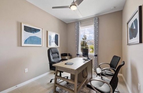 The villa is furnished in a Coastal Florida style with the extended lanai opening to the living area bringing the outdoors in. A well appointed kitchen with breakfast bar, custom cabinets and stainless steel appliances. Other features include Modern tile plank floors, high impact windows, 10 ft. Ceilings. The Master has an en suite bathroom with double vanity, frameless walk-in shower, and a generous walk-in closet large primary suite, comfortable guest bedroom, spacious den that can be used as a home office, or third bedroom and an attached two car garage complete this brand new home.