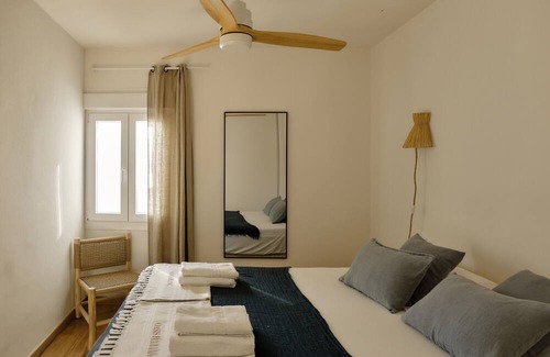 Stay within a 5-minute walk from the beach in a spacious and comfortable apartment, equipped with WiFi, private parking, communal pool, and barbecue area.