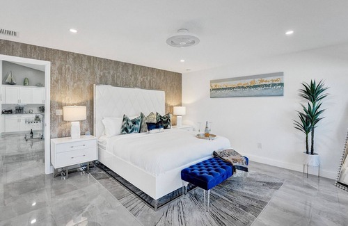 Plan your vacation at this glamorous, brand newly constructed home in the beautiful Lake Ida area of Delray Beach. Perfectly designed with premier furnishings, tasteful decorations, and a spacious, split floor plan. This home will comfortably accommodate up to 10 guests, and will be the perfect oasis for your South Florida vacation. Enjoy a beautiful fire by the outdoor furniture, take a trip down Atlantic Avenue, or explore Delray’s rich history when you stay.