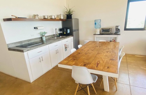 This apartment (Cactus) is located right on the long sandy beach in Kino Nuevo. It is spacious and brand new. It sleeps 5 people comfortably (max 7) and has a fully equipped kitchen.