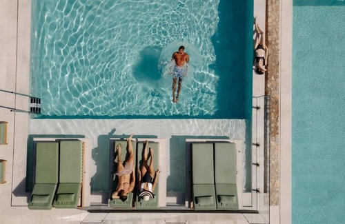 Water enthusiasts can enjoy three main pools, including a serene Quiet Zone Pool, surrounded by sun loungers and umbrellas for ultimate relaxation. A playroom, small library, and a wine cellar stocked with an exquisite selection of Greek wines cater to diverse interests and tastes.