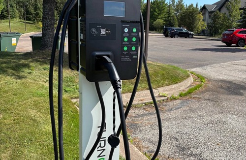 Electric car charging station on site
