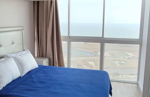 Brand new 3 bedroom condo is like staying at a 5 Star Hotel but with your own privacy! with and Incredible view of the Pacifc Ocean, walking distance for local cuisine or a taxi ride to your favorite Peruvian site seeing.