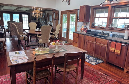 From cocktails in rocking chairs on the wrap around porch, to cosy fires in the living room, this house has old world, European elegance and charm while offering modern amenities and conveniences. High quality furnishings with a smattering of antiques makes this a very special place to enjoy.
