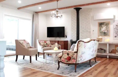 Located in the heart of Julian, yet tucked away in the privacy of its own garden, Briar Patch Cottage offers seclusion within close walking distance to shops and eateries. Equipped with a spacious farmhouse kitchen and ample dining area, a generously sized TV and hot tub, this cottage is designed with both real living and luxury in mind. Enjoy the bucolic charm of rustic beams and glittering chandeliers in this cozy yet spacious, vintage but modern, exclusive cottage in the very center of the township of Julian.