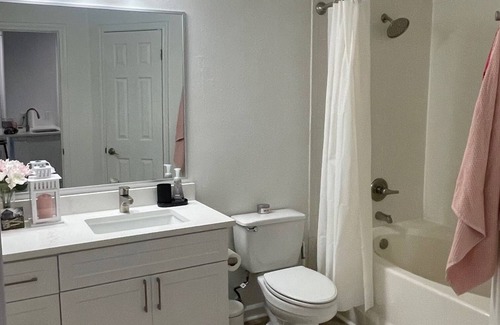 Unwind in Austin at this welcoming, quiet condo. This peaceful one-bedroom retreat has been beautifully updated and offers guests a washing machine, WiFi, fitness room, AC, heating, and more. Step into this terrific space and feel right at home. We hope you enjoy what our place and Austin has to offer.