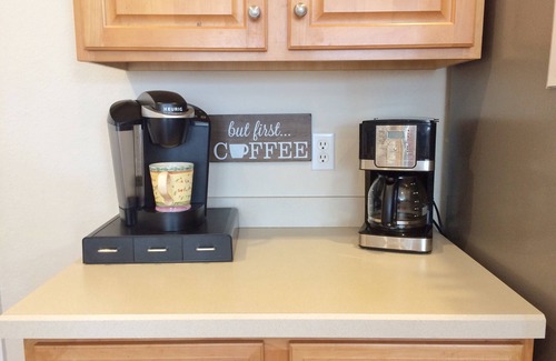 Our "foodie" kitchen thoughtfully provides just about every essential, from a Keurig coffee maker, to spices, a salad spinner, and bakeware to make food preparation a joy, so please leave your own kitchen at home! Your children will instantly gravitate to the eat-in kitchen table and feel right at home while using the available kid-friendly plates, cutlery, and booster seats.