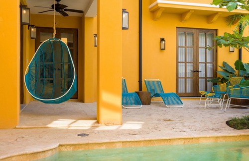Its exterior painted cheerful butterscotch yellow, 4 Calle Cartagena is ideal for families and other groups traveling together. With four king bedrooms (all with town views, two with terraces), as well as a bunk bed, this spacious home is built for fun, both inside and out. (There’s a desk in one of the bedrooms for a little work, too.)