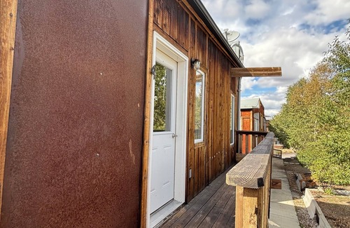 This two-bedroom, second story apartment boasts an open floor plan, high ceilings, and—most notably—expansive, floor-to-ceiling windows that flood the space with sunlight throughout the day. The cozy living room includes a futon for extra sleeping space and in floor heating for extra comfort. After a day out, relax in the bathtub or enjoy watching wildlife and scenic views from the open living and dining area. Conveniently located within walking distance to stores and the Museum of the Mountain Man.