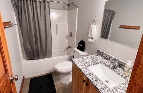 Escape to our enchanting lakeside cabin nestled on Brightstone Lake, a sprawling 65-acre property, boasting a private 18-acre lake. With 8 beds, full kitchen and bath, you'll have plenty of space for your weekend getaway.Immerse yourself in the serenity as you swim in pristine waters, explore scenic hiking trails, and unwind in the comfort of our cozy cabin. Fishing enthusiasts will delight in the abundant catches. Experience the perfect blend of tranquility and adventure. Book now, for an unforgettable getaway.