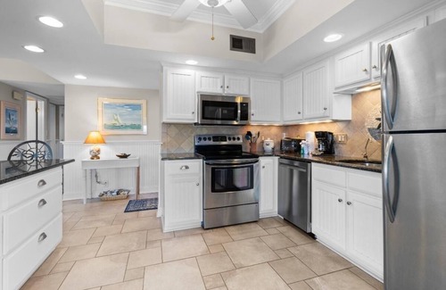 Escape to our spacious 3 bedroom/2 bath condo, nestled on the second floor. With a serene palette of soft pastels, this unit ensures relaxation for up to 8 guests. Unwind in rooms boasting a King bed, 2 Queens, or cozy Twins. Let the soothing ambiance set the tone for your perfect vacation by the sea.