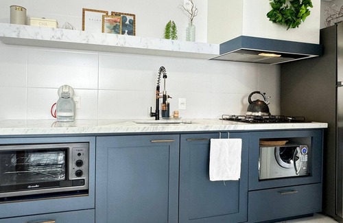 The kitchen is complete and equipped with all the necessary utensils to prepare everything from quick meals to more elaborate dinners. You will have a refrigerator, stove, microwave, oven and all essential kitchen utensils available, such as pans, plates, cutlery, glasses and even wine glasses to celebrate special moments.