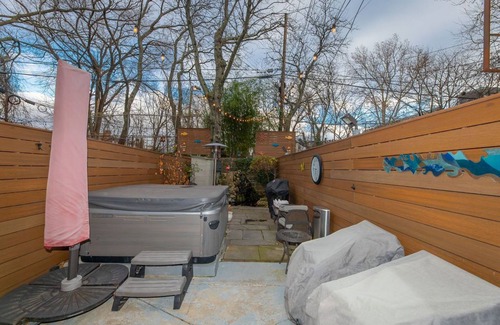 Brownstone duplex with hot tub and koi pond 20 mins drive from NYC is located in Jersey City. Brownstone duplex with hot tub and koi pond 20 mins drive from NYC provides accommodation, featuring Security/Safety, Guest Services, Entertainment, among other amenities. This Apartment features Security/Safety, Guest Services, Entertainment, to make your stay a comfortable one.