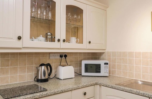 Buckbarrow, a first-floor apartment, consists of a kitchen/diner with electric oven, electric hob, microwave, fridge (with ice box), dishwasher, kettle, toaster, and dining table for four, and a sitting room with Smart TV, sofa, and armchairs. The bedrooms consist of a double and twin. There is a shower room with walk-in shower, basin, and heated towel rail, and WC. WiFi, fuel, power, bed linen, and towels are included in the rent. Outside, there is an enclosed rear garden with patio, lawn, and furniture, and off-road parking for two cars. One well-behaved pet is welcome. Sorry, no smoking. Whatever the weather, a wonderful stay awaits at Buckbarrow. Note: Steps leading up to the property, please take care.