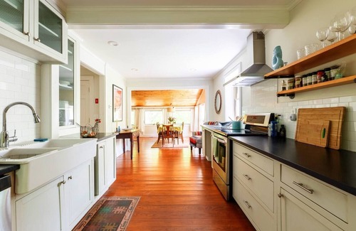 The original part of the house is a Berkshires-style cabin built in 1940 and over the years has seen additions and has transformed into the unique home that it is today. You can enjoy hiking the trails in French Park right across the road and accessing nearby Prospect Lake, a 5 - 10 minute walk. Please be aware that there are some 'unconventional' steps to navigate (pictured). Enjoy outdoor dining on the patio and an outdoor grill.