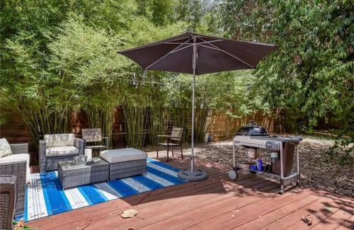 3 Queen bedrooms w/ brand new mattresses + new furniture/decor (2021) throughout the home! 3 bedrooms + LG comfortable sofa couch + LG futon fits 9 guests comfortably. Kitchen has been recently remodeled and all appliances and kitchenwares are new (2021). Backyard oasis at Buddy's has a sparkling pool (weather permitting), ping pong table, bocce ball, string lights & grill. Entire property is fully gated, safe and very secluded!