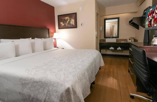 Our budget hotel offers convenient amenities for hassle-free stays for solo or business travelers and families with kids. Guests are welcomed with complimentary coffee in the lobby at any time of the day. Each smoke-free room is equipped with a flat-screen TV featuring premium channels, free WIFI access, a comfortable bed, and a private bathroom. Additional perks include free onsite parking, and you can bring your furry companion along at no extra charge!