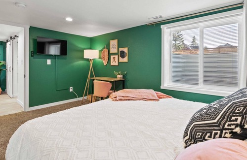 Beautiful modern farmhouse bungalow, comfortably sleeps 7 and allows dogs! The home boasts 3 bedrooms and 2 baths, free on-site parking, washer/dryer, AC, king bed, queen bed and full/twin bunk, stocked kitchen and stainless oven with built-in air fryer, laundry on-site, local Roast House coffee, fully fenced yard, smart TV's with Roku, and fast WiFi! Centrally-located close to Kendall Yards, restaurants, coffee, grocery and shops, you're sure to have everything you need in this chic home!