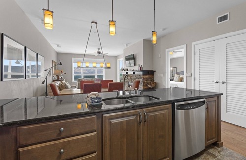 This 3-bedroom condo can accommodate up to 8 guests with a king-sized bed in the master bedroom, a king-sized bed in the second bedroom, a bunk bed in the third bedroom (full & twin), as well as a full-sized sleeper sofa in the living room. There are two full bathrooms, with the master bathroom being private.
