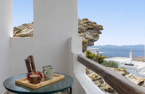 Σε ένα από τα ομορφότερα χωριά της Τήνου τον Τριαντάρο, βρίσκεται το σπίτι δίπλα από έναν επιβλητικό βράχο, με απεριόριστη θέα το χωριό και την θάλασσα!