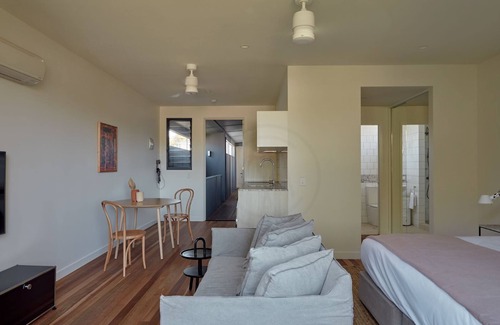 The studio has a rear laneway entrance and has a kitchenette and king bed with ensuite.