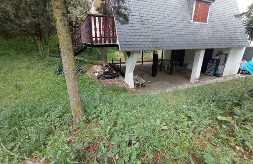 Zona techada bajo la casa para que en los días más lluviosos se pueda estar al aire libre.