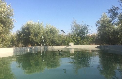 Thirty kilometers from the hectic life of Marrakech, in the countryside, in an artist's residence of three hectares planted with olive trees with panoramic views of the Atlas and its foothills,. Located at the foot of the "jbilet" small mountains, foothills of the Atlas easily accessible for walkers.