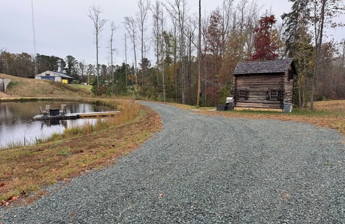 Experience peaceful sunsets in our newly built charming cabin nestled by a serene pond, surrounded by picturesque vineyards and beautiful pastures. Perfect for nature lovers, with walking trails, and just a short drive from Chapel Hill and historic Hillsborough. Unwind in this idyllic retreat, where the beauty of nature awaits. Take it easy at this unique and tranquil getaway. Outdoor kitchen and lounge area. Perfect for pets with 2 miles of walking trails. Plenty of hot water and great internet