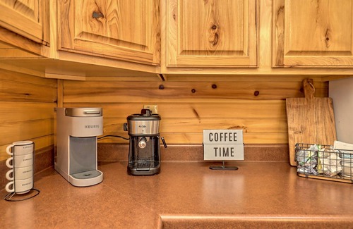 Come get away as you enter a large open floor plan with vaulted ceiling, log fireplace, and the comforts you need for a mountain retreat there you will find the perfect space for gathering with family and friends. A functional kitchen with wooden cabinets, bar stool/breakfast counter, and Beautiful wood interior walls and floors throughout the cabin. Kitchen also has a beautiful wooden dinning table that can sit up to 8 people. Cabin has a total of 4 tvs with access to Roku TV, Netflix, Youtube and more, also step outside and enjoy a night on the hot tub that’s located on the deck.