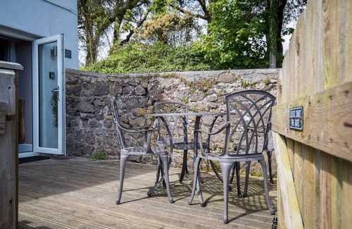 Outside, off the kitchen/living area, there is a private decked area with seating for up to 4 people - the perfect setting to relax, enjoy a drink, and take in the incredible views. There is also a large (shared) enclosed garden.