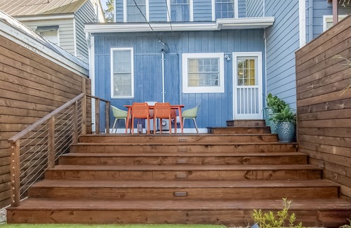 The Escape on Jones is not owned by a factory rental company, but is instead the culmination of our family's dream. We visited for years and as much as we love the beauty of all the historic homes, we struggled to find a rental that felt safe for our young children. Steep rickety staircases, peeling paint, dark corners, and hardscaped courtyards led to anxiety-ridden rental experiences. So when a fixer upper hit the market, we decided to do something different.
