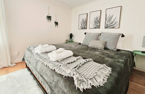 ✓ sleek smarts TV w/ Disney+ Netflix & Hulu ✓ fully equipped kitchen