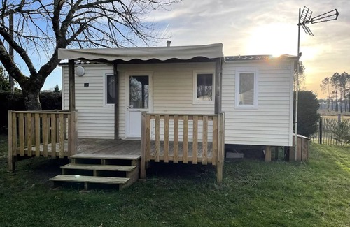 Accommodation: Mobile home 20 m2 4 people For tight budgets, mobile home 2 bedrooms with all the comforts conducive to pleasant holidays 1 bedroom with 1 bed of 140*190 1 bedroom with two twin beds Television, refrigerator/freezer, coffee maker, and everything necessary to cook Bathroom, separate toilet Dining area for 4 persons Pillows and duvets provided. Sheets not provided Crockery adapted to the number of persons Electric heating in living room Exterior: Semi-covered terrace, garden furniture, parking space. The +: the wooden terrace with its garden furniture for sunny meals