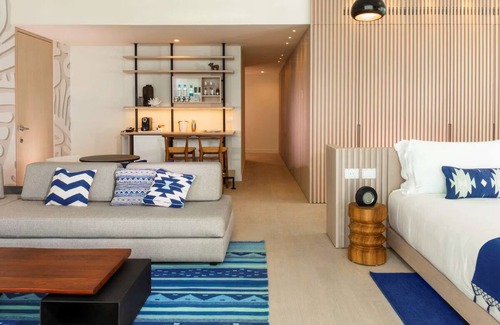 Walk into your room and immediately feel the peaceful vibe. Surrounded by Cancun's vibrant beauty, your room is the perfect starting point for adventures and exploration. Ideal for families or couples seeking a quiet getaway, you'll have access to a private beach club and an outdoor pool, ensuring a relaxing and enjoyable stay in this stunning location.