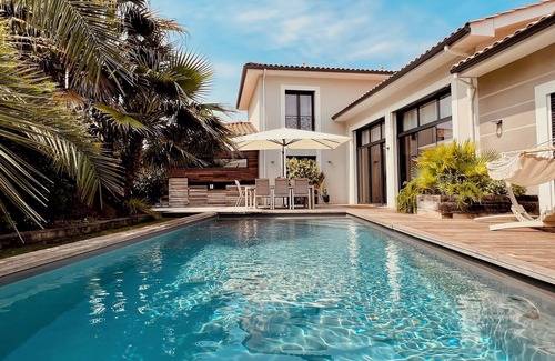 CAP Ostrea is located in Andernos-les-Bains. CAP Ostrea provides accommodation, featuring Wellness Facilities, Laundry, Pool, among other amenities. This House features Wellness Facilities, Laundry, Pool, to make your stay a comfortable one.