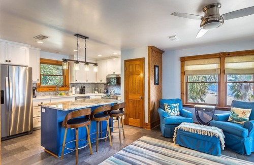 Captain's Quarters is a warm, homey, and cozy stand-alone home with all of the bells and whistles. Beautiful wood and tilework throughout the home gives you a one-of-a-kind luxury getaway right on your private slice of Carrabelle Beach. The one bedroom home is furnished with a king size bed, pull-out queen sleeper, top-of-the-line appliances, and everything you need for a relaxing beach vacation, hunting trip or fishing excursion in some of the best fishing grounds in the south. Relax in one of the screened-in porches or venture out into the sunshine on the beach. Keep up on your work-out routine in the free weight open-air gym. Jump in one of the furnished kayaks for a fun paddle around St. George Sound and share the day with friends & family and many varieties of wildlife that call this area home. Spark the night with a bonfire next to lapping waves while cooking your day's catch on furnished charcoal or gas grills. Do everything or do nothing and enjoy your vacation on The Forgotten Coast!