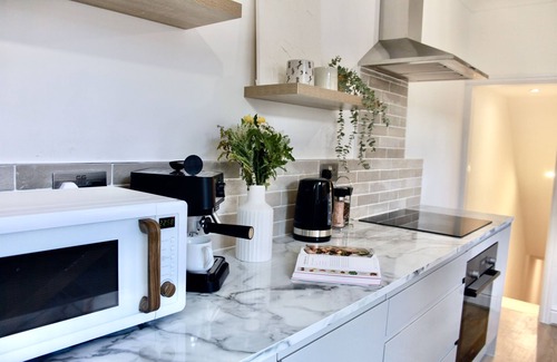 Fully equipped kitchen with Expresso Machine, Toaster, Boiling Cattle, Microwave, Dishwasher, Washing machine, Fridge Freezer, Oven, Induction hob and all Kitchenware for every guest.