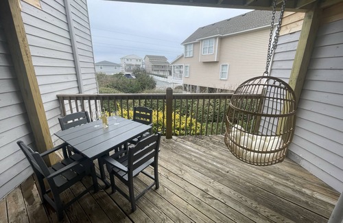 Relax and enjoy the coastal vibes throughout this newly decorated cozy home or sit on one of the 2 decks with coffee, a glass of wine, or dinner and enjoy the Carolina ocean breeze . The Kitchen is well stocked with what you need to feel like home with granite counters, all stainless steel appliances, Keurig coffee machine and a bar seating area that flows into the dining area and living room with a first floor deck that has outdoor seating for 4 and a swing chair to read a book and listen to the ocean waves. The home also has a brand new full size washer and dryer. If you aren't at the community private access beach which is just a short walk away, you can enjoy the swimming pool ( opens Memorial Day-Labor Day) that is located just a few steps from this unit, or the nearby community park across the street with a playground, picnic area and basketball court. There is also a boardwalk out to the sound where you can fish, crab or view the beautiful Carolina sunsets.